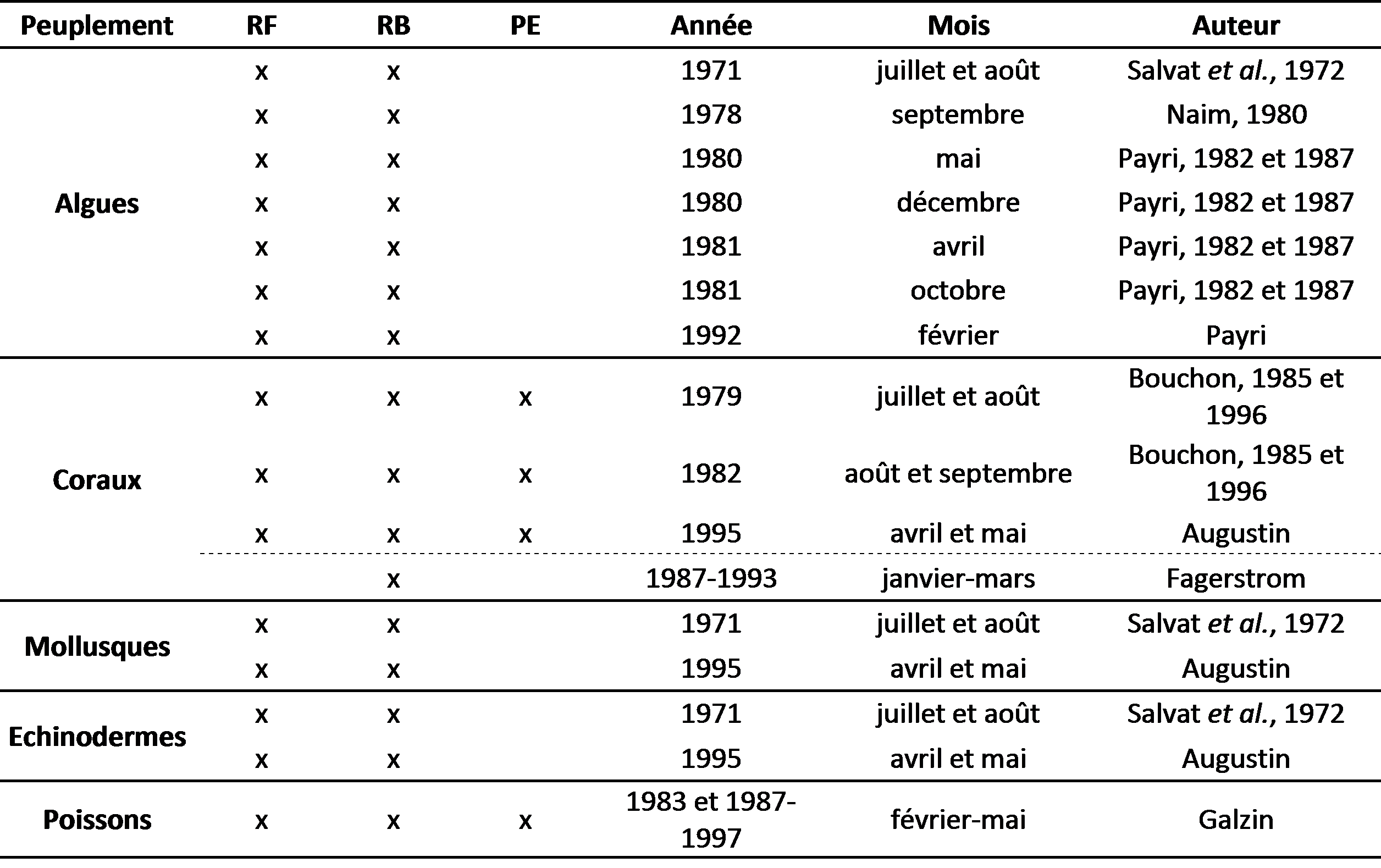 • The first sampling, in 1979 and 1982, covers the three geomophological units of the Tiahura reef (fringing reef, barrier reef and outer slope).