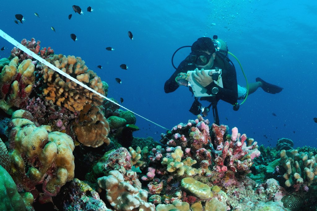 L'analyse des peuplements de poisson est réalisée selon trois transects-couloir de 5 m x 50 m, soit une surface projetée de 250 m2 chacun.