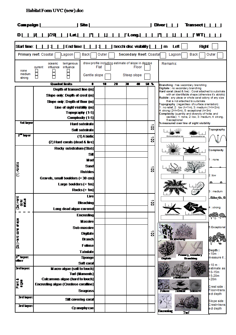 - one diver at the end of the fish census evaluate the substrate using MSA file C on 250 m2 (50m x 5m).