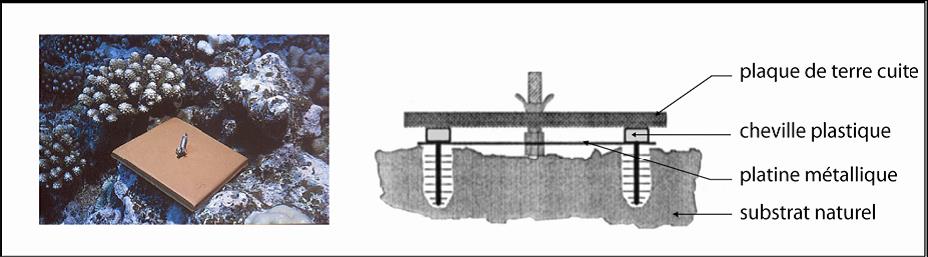 After recovering the plates, they are whitened using bleach, dried in the sun and examined using a binocular magnifier. The recrutes present on the plates are counted and identified to the family level for the Acroporidae, Pocilloporidae and Poritidae and two additional categories are defined: « autres familles » for other family and « cassés » for broken.