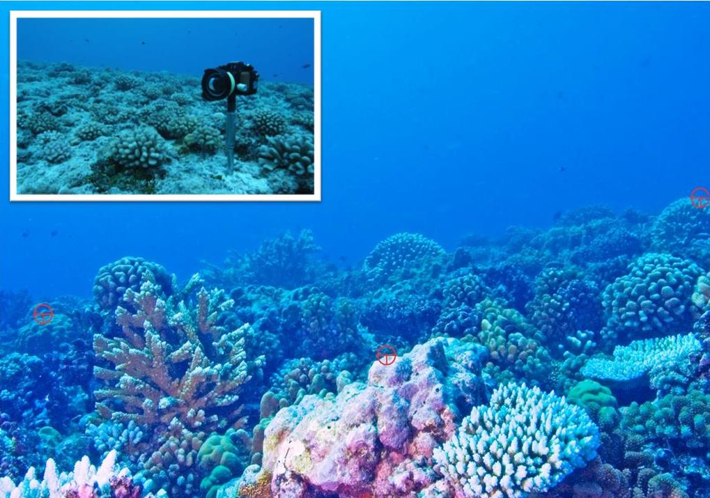 A permanent underwater seascape photographic survey was started in 2005 on all the islands of the network. It consists in taking a picture of the reef from a fixed point. This technique gives a precise position and angle along the years.