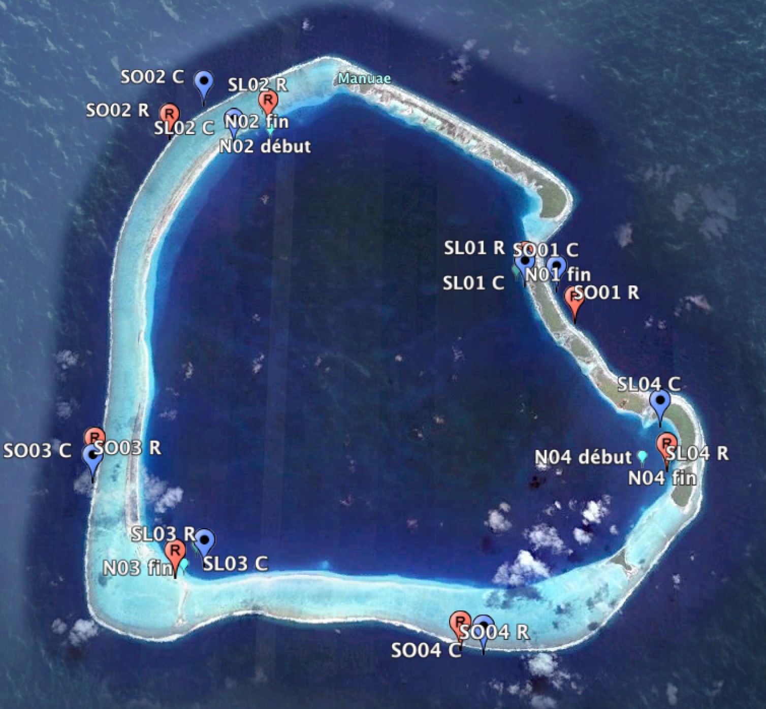 | SO4 | -16,59325 | -154,66353 | 15-18 | 1 | 12 | 2014 | Anaesthetic | Spur beginning of slope | - |